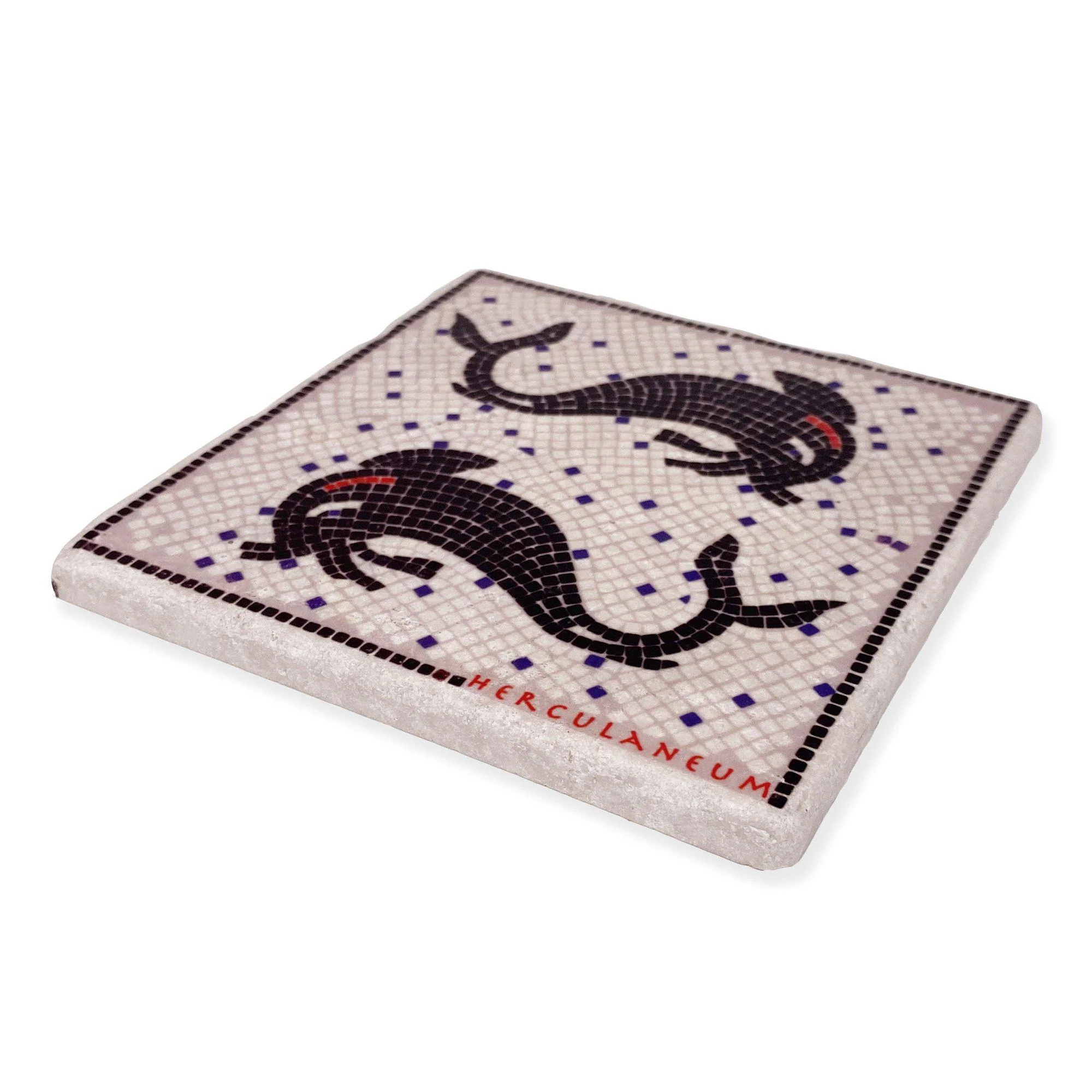 Una delle scoperte più affascinanti di Ercolano è la Villa dei Papiri, una lussuosa residenza romana che conteneva una vasta biblioteca con papiri filosofici e testi antichi. I ritrovamenti di Ercolano offrono uno sguardo unico sulla vita quotidiana e sulle abitazioni dei Romani di alto rango, rendendo questa mattonella non solo un pezzo decorativo ma anche un collegamento tangibile con il mondo antico.