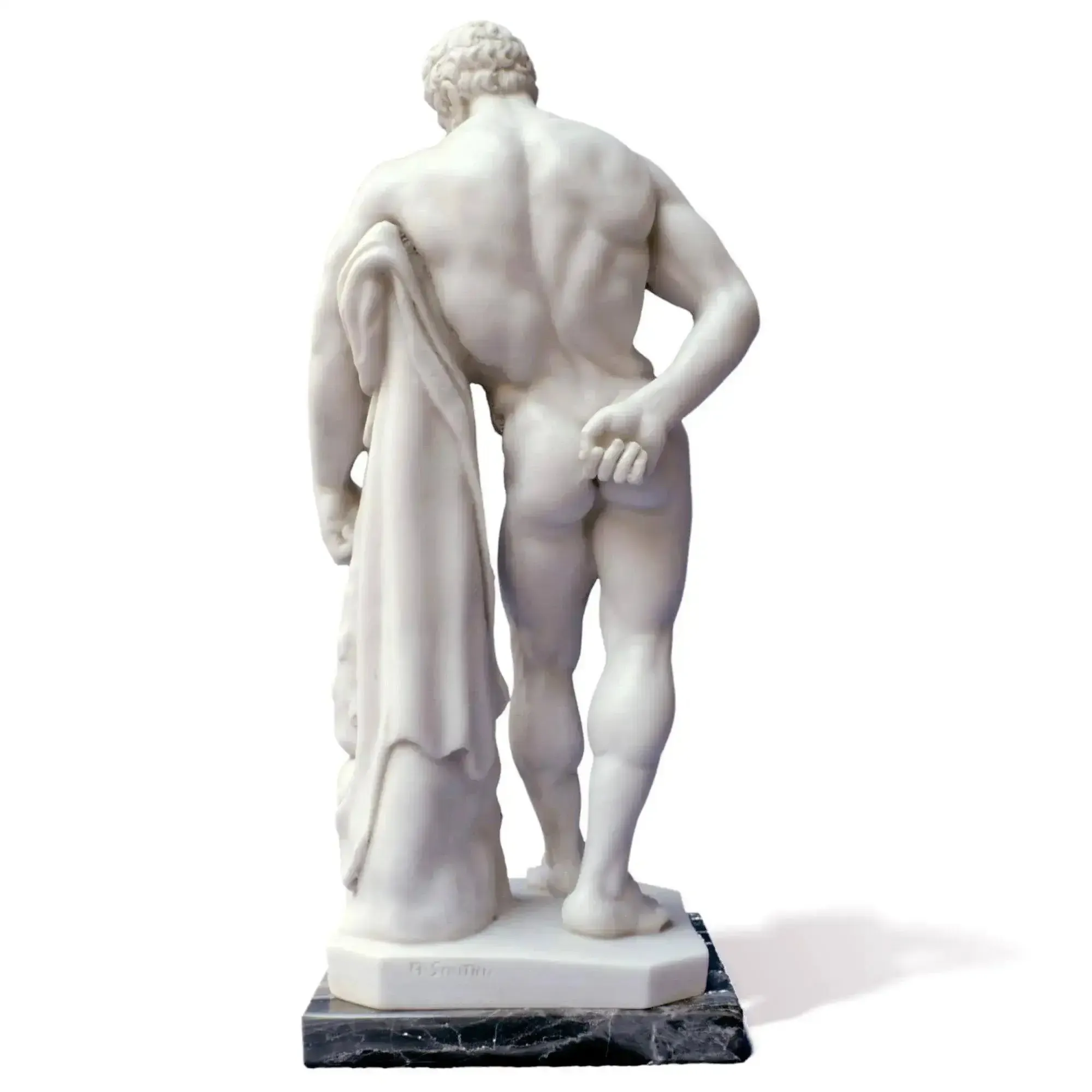 Questa riproduzione in marmo di Carrara cattura perfettamente la potenza muscolare e la serenità del volto di Ercole, offrendo un'opera d'arte che unisce bellezza, storia e mitologia. È un tributo all'abilità artigianale degli antichi scultori e un richiamo alla grandezza dell'epoca classica.