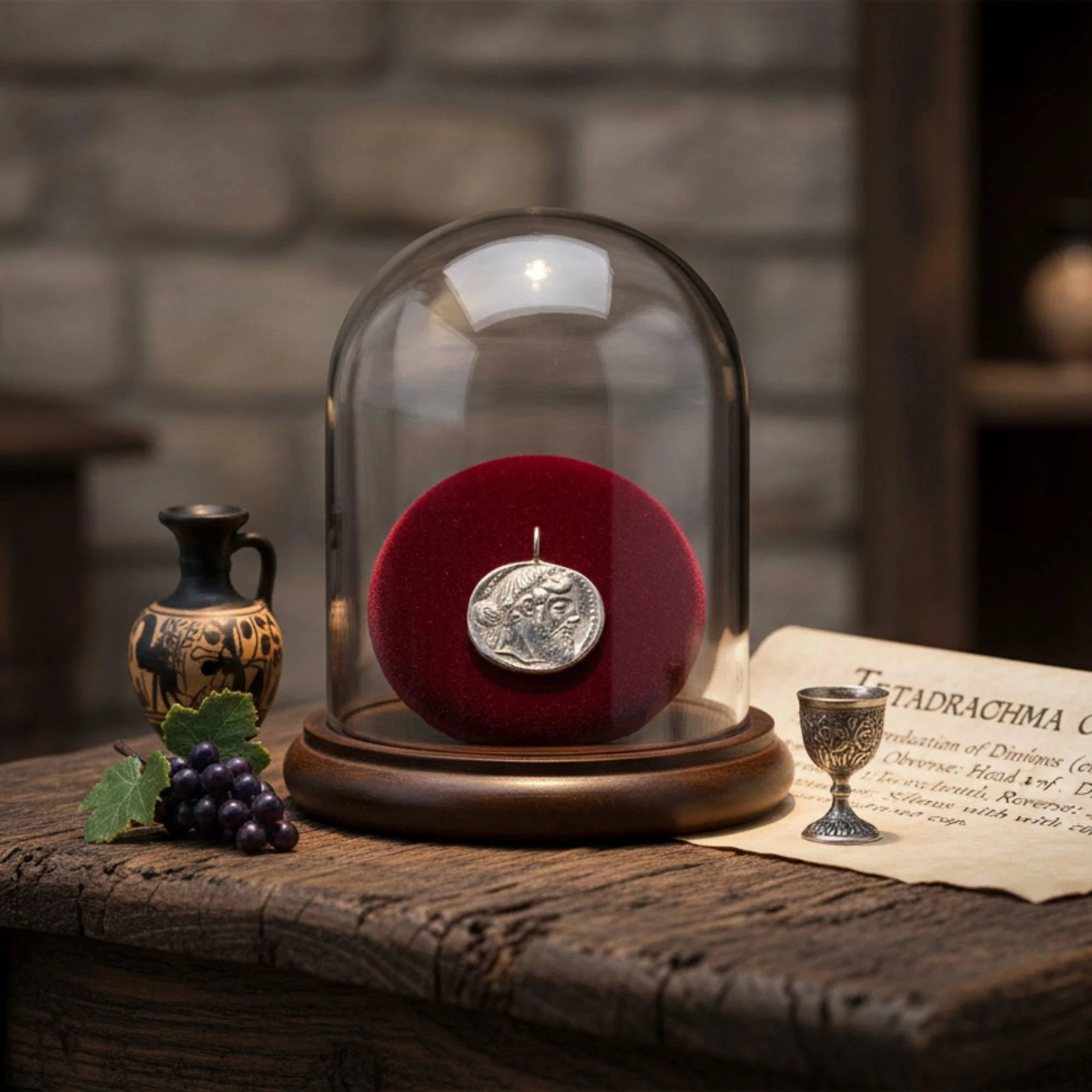 Dalla seconda metà del VI secolo a.c., Dioniso è raffigurato sulle monete coniate a Naxos intorno al 530 a.c., per celebrare il Dio e il vino prodotto sulle fertili pendici dell'Etna.
