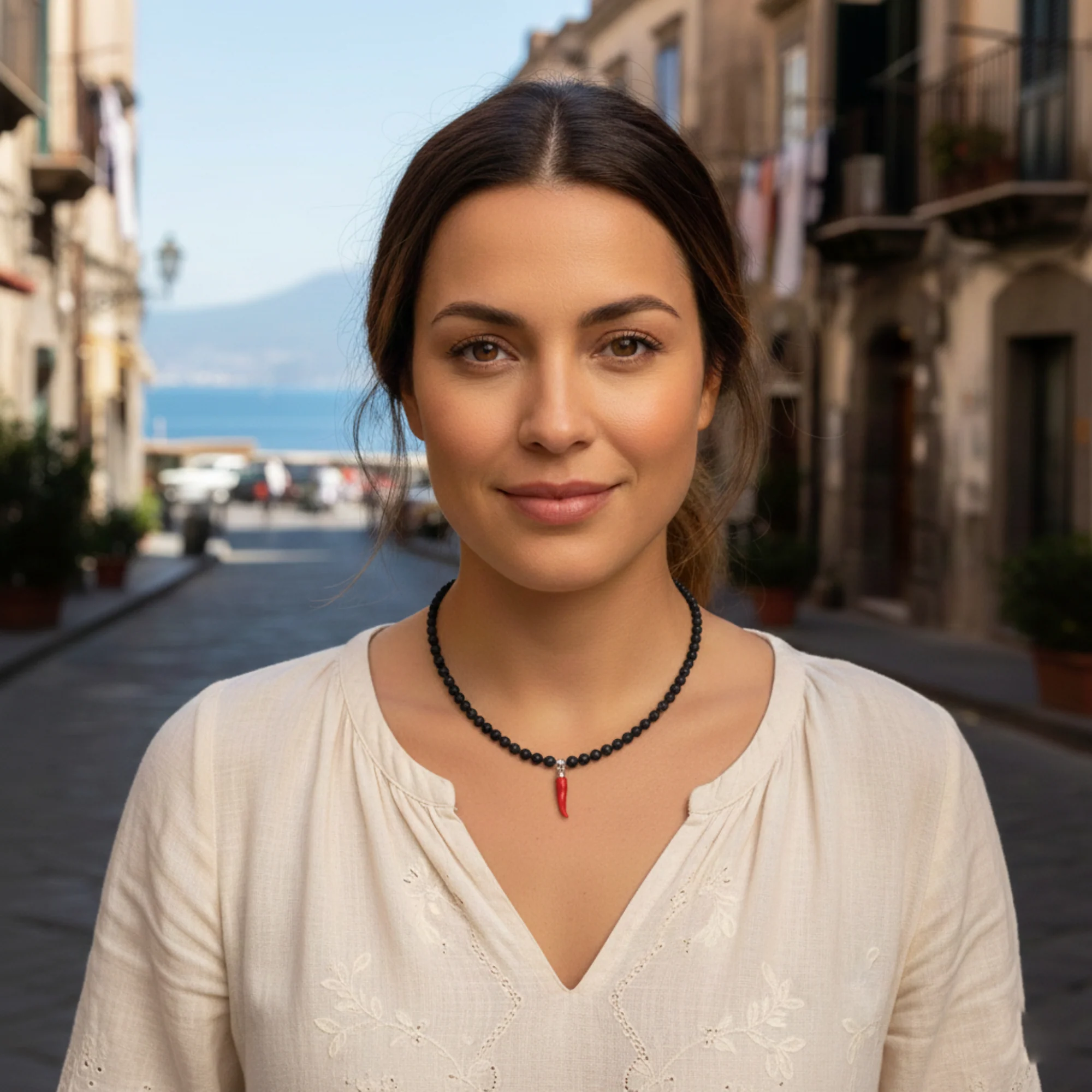 - Materiali: Pietra Lavica, Corallo rosso, Onice ed Argento 925